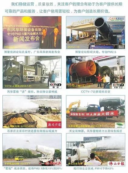 二十多年的專業品質與真誠服務,一直專業研發制造環保噴霧除塵降塵設備,贏得了客戶的信賴,也成就廣東風華環保成為國內優質的大氣環境治理綜合解決方案提供商。