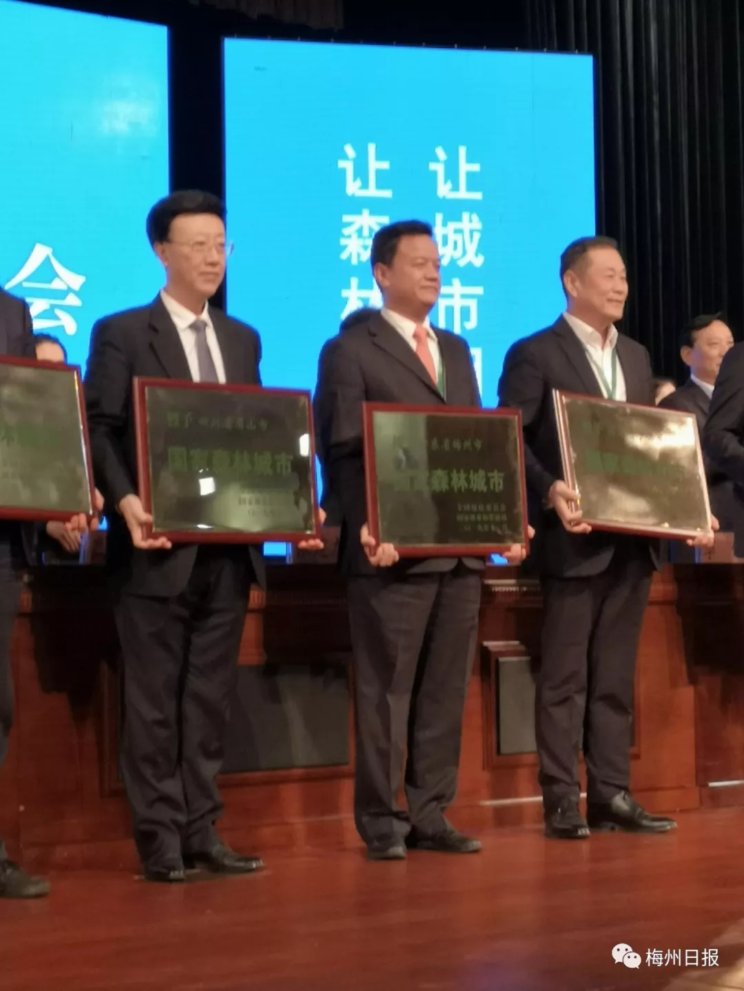市委副書記王慶利代表梅州市委、市政府正式接過“國家森林城市”榮譽獎牌。這標志著梅州生態(tài)文明建設邁上新臺階、步入新征程。