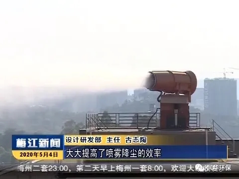 【設計研發部主任 古志陶:這個是我們風華今年最新推出的一款產品叫做復式噴霧機,它特點主要是有兩個方面,第一個就是它的軸流風機有兩個獨立的系統,這樣可以擴大它覆蓋范圍,還有就是它的傳動機構也是兩個獨立的,大大提高了噴霧降塵的效率。】