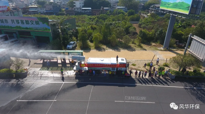 近年來,風華環保公司研發、生產的各類型噴霧降塵、消毒防疫噴霧設備廣泛應用于城市道路、城市舊城改造、工地、碼頭、礦區、物料堆場、封閉廠房等場所,降塵抑塵效果優質,明顯的節約了水資源,被多地環保部門應用于城市的環保降塵工作,因其造型獨特,得名“風華霧炮”。