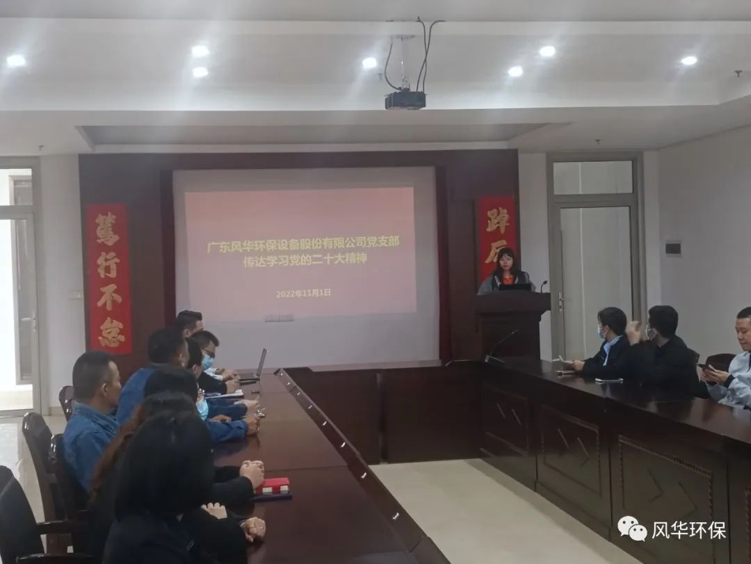 11月1日下午,廣東風華環保設備股份有限公司黨支部梁書記在公司會議室召開學習貫徹黨的二十大精神學習會。出席此次座談會的有風華環保總經理梁良、風華環保財務 總監羊明瑋、風華環保董秘黃乃偉及風華環保各部門人員。